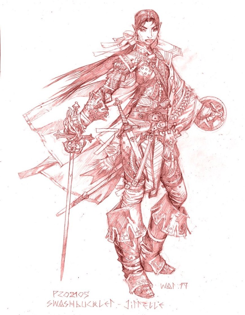 Previous Image Next Image 110619_Swashbuckler Jirrelle the Iconic Swashbucler by Wayne Reynolds. Art courtesy of Paizo Inc.